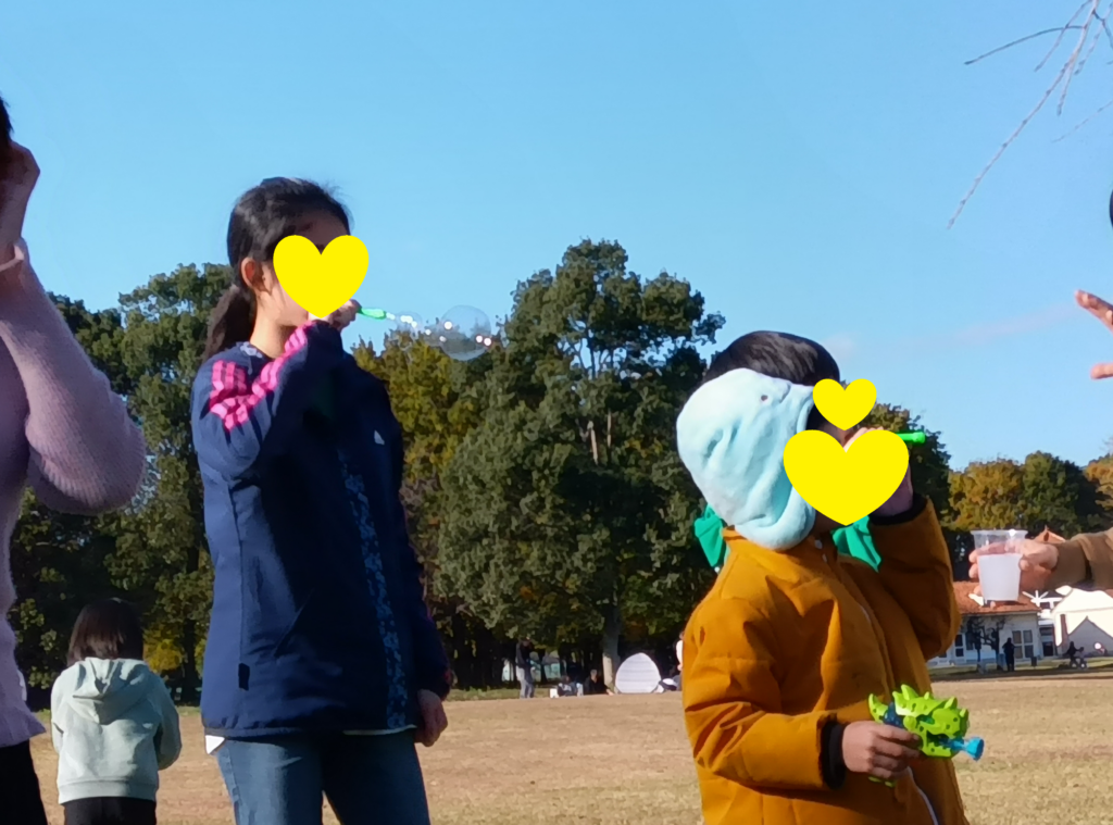お昼ご飯の後は、遊具やシャボン玉などで遊んだりと、たんぽぽさんとみつばちさんが交流する場面が、たくさんみられました。